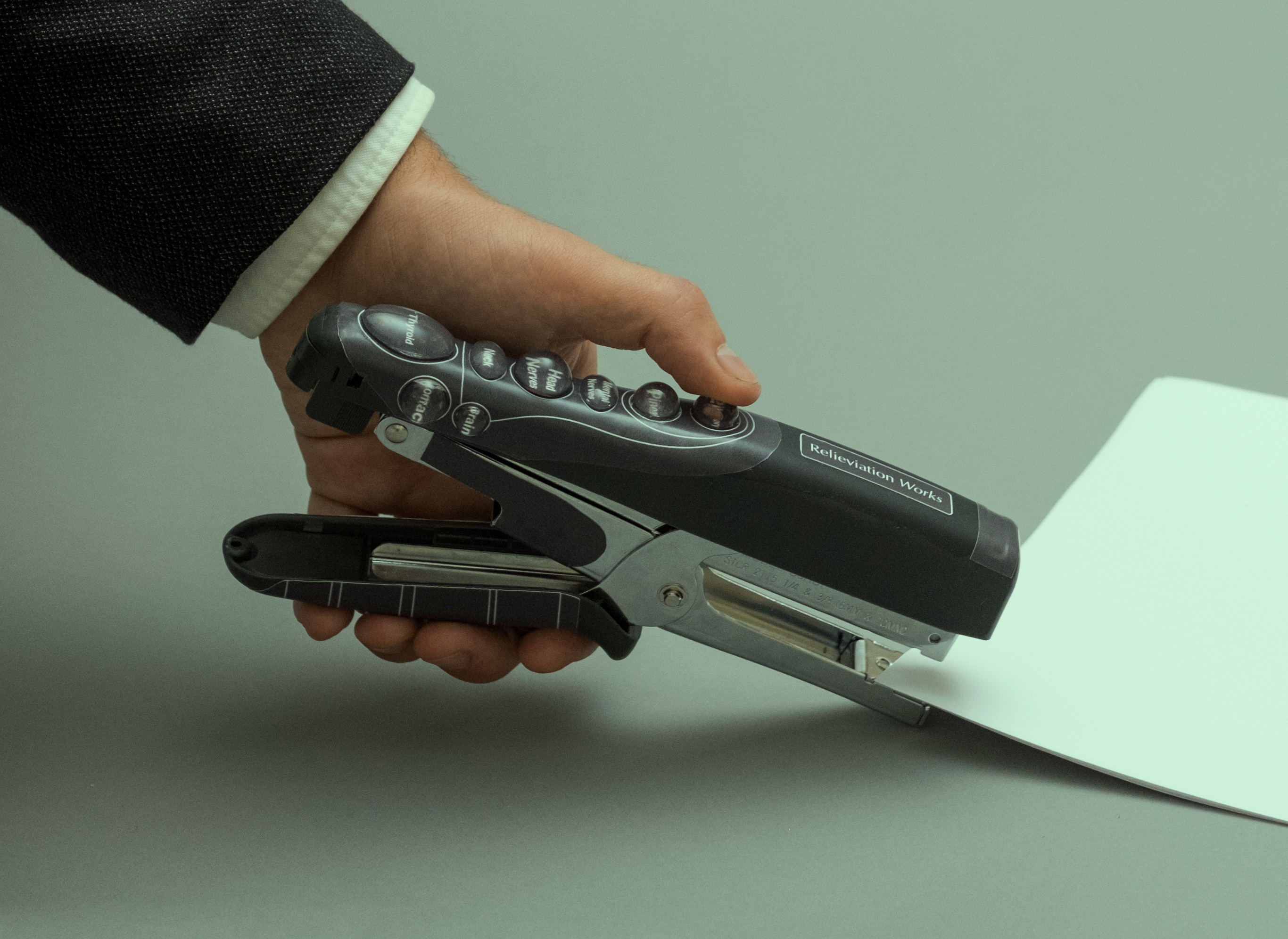 It is important to McManus that each piece operates not only conceptually or aesthetically, but also functionally. “The process of fabrication is different every time,” McManus says. “Take for example the stapler, I had to do quite a bit of research and then work with an acupuncturist to map the right pressure points onto the grip. Figuring out how to make each thing is half the fun.”