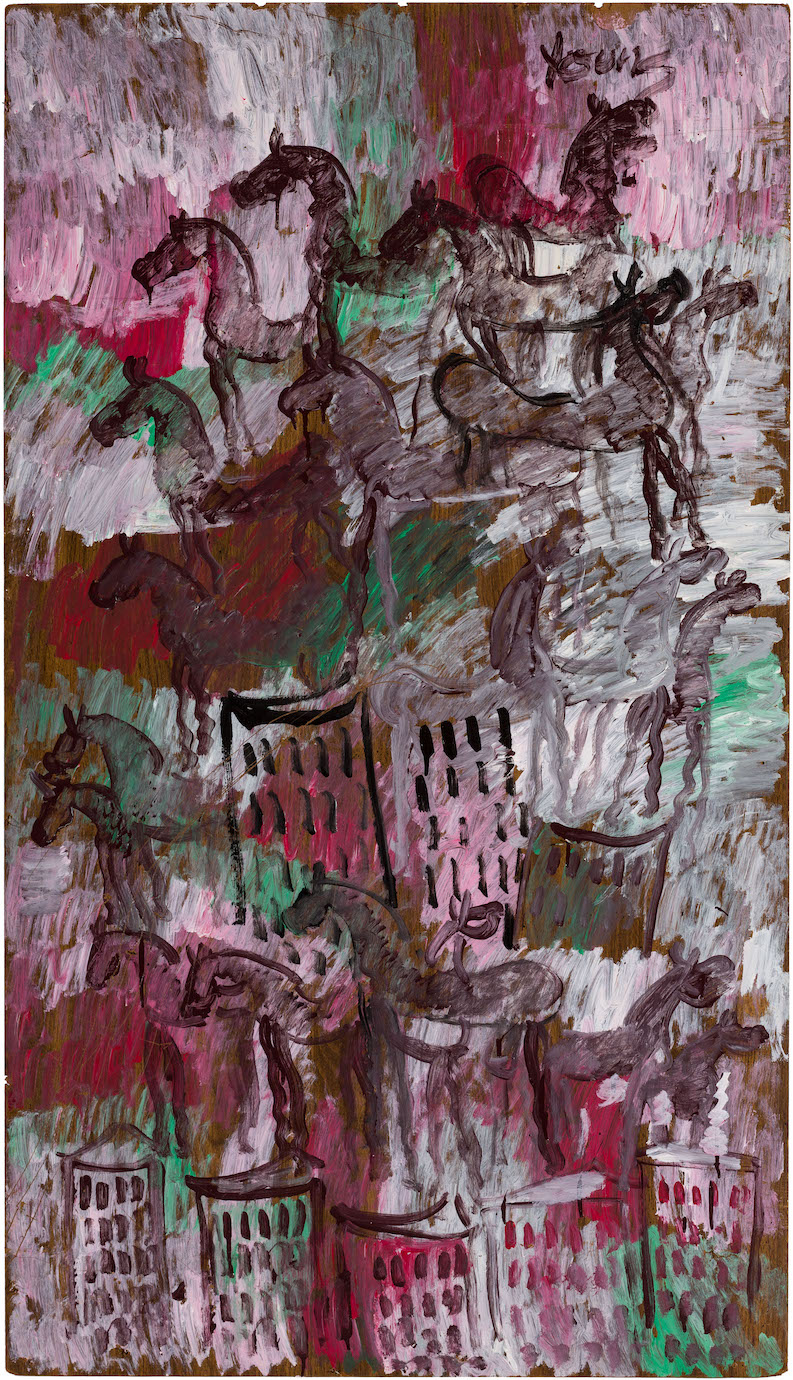Bernard Davis, then the owner of the Miami Art Museum, eventually became a patron of Young’s. In 1999, so did the Rubell family, purchasing the entirety of Young’s studio (nearly 3,000 pieces) and later donating pieces to institutions around the country. Late last year, during Miami Art Week, the Rubell Family Collection Contemporary Arts Foundation opened Purvis Young, a floor-sized exhibition of Young’s work. Still on view through June, the show includes over 100 of Young’s paintings, each from the permanent collection. (A few were recently received as a donation, in memory of Janet Fleisher).