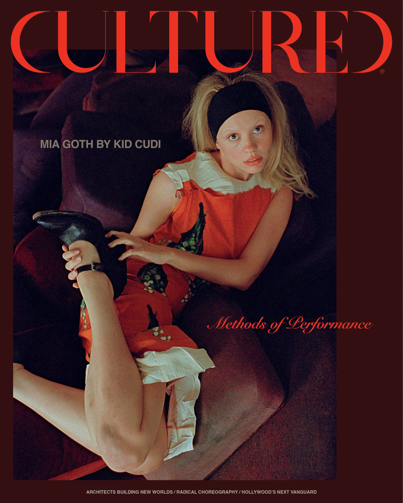 Behind her soft blonde locks and airy voice is an actor well-versed in horror, thrills, and sexual provocation. As CULTURED's February/March 2023 cover star, Mia Goth, prepared for the X trilogy's third and final installment, MaXXXine, she ruminated on artistic vulnerability, creative challenges, and evolving her craft with her castmate, Scott Mescudi aka the multidisciplinary performing artist Kid Cudi.