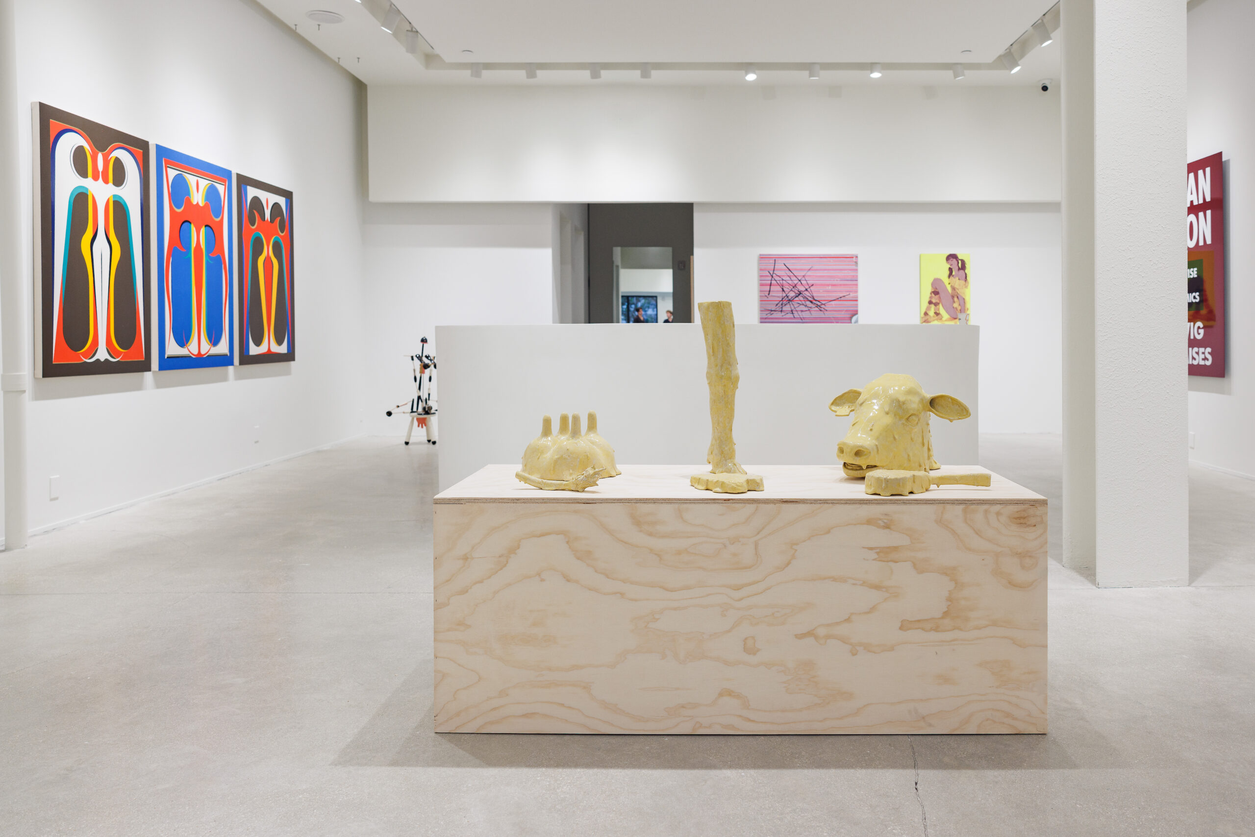 “That Was Then, This is Now,” curated by Jeffrey Deitch director William Croghan, highlights 25 young artists from overlapping social circles to capture a moment in contemporary culture. Highlights include work by an LA contingent including Mario Ayala, Alfonso Gonzalez Jr.,and Michael Alvarez, whose works zero in on textures of the Southern California landscape. A personal highlight was the artists doing surprising things with materials—Lindsay Lou Howard’s iconoclastic ceramics (particularly her buttery-yellow homages to the great American county fair) or Adrian Schachter’s cosmic imagery digitally printed on cashmere. I asked Jeffrey if we’d see him at Coachella again this year, but he’s still TBD.
