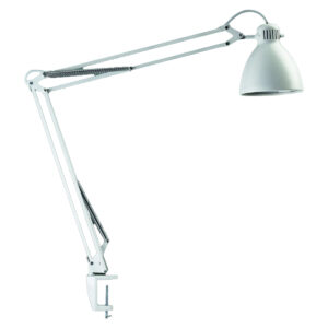 Iconic task light with clamp for easy placement on desk or nightstand.
