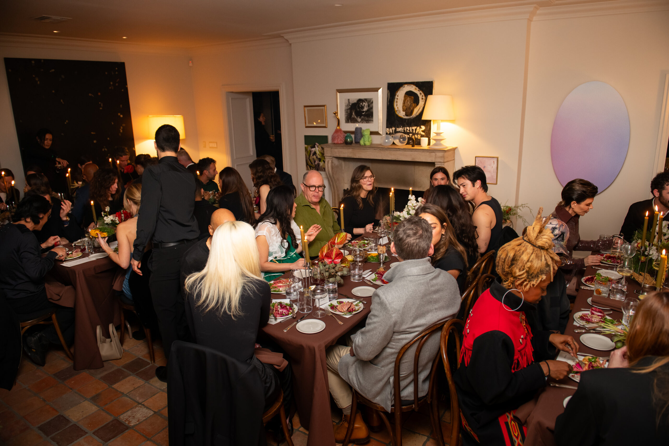 To ring in the release of CULTURED’s Artists on Artists issue, Editor-in-Chief Sarah Harrelson gathered film, art, and cultural cognoscenti into her Los Angeles home for a festive, candlelit dinner. Co-hosted by Kyle MacLachlan, the issue’s digital cover star, alongside Harrelson and Aēsop, the evening’s blustery weather, roaring fire, and festive cocktails made it a highlight of the holiday party circuit. Guests moved from the garden, which overlooks sweeping views of Los Angeles, to the dining room, where rows of tables were laid with pine boughs.
