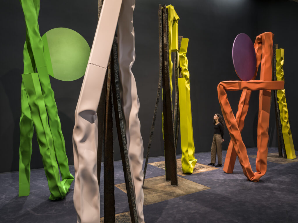 No one has really killed it on the museum’s central ramp since Hilma af Klint, whose paintings, commissioned by the spirit guide Amaliel, were, as luck would have it, meant for a spiral-shaped temple—not until Carol Bove likewise answered the call from another realm (let’s imagine) to do the rotunda up again, similar palette more or less, but this time in supple monuments and missives in pinched and draped steel.—Johanna Fateman