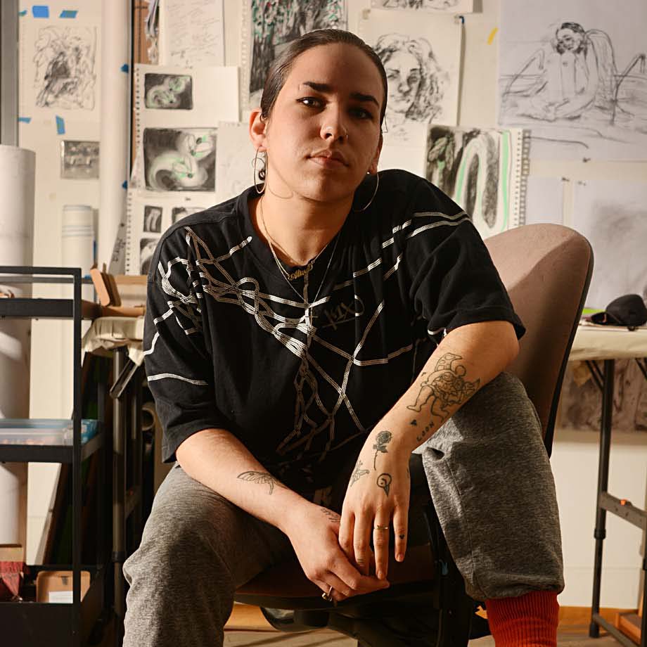 “Sometimes I feel sad or weird and I realize I haven’t been in the studio. It’s like feeling dehydrated then realizing you haven’t had any water,” Alina Perez tells me over the phone. It was 2018, at Deli Gallery in New York, when I first encountered the artist’s extraordinary drawings, which appear painterly from a distance or through the screen but are in fact rendered in transfixing detail with charcoal and pastel. In one that I remember clearly, a shirtless man with a tank top tan and Adidas basketball shorts sits on a chair, one foot lifted as he paints his toes with clear Revlon nail enamel.